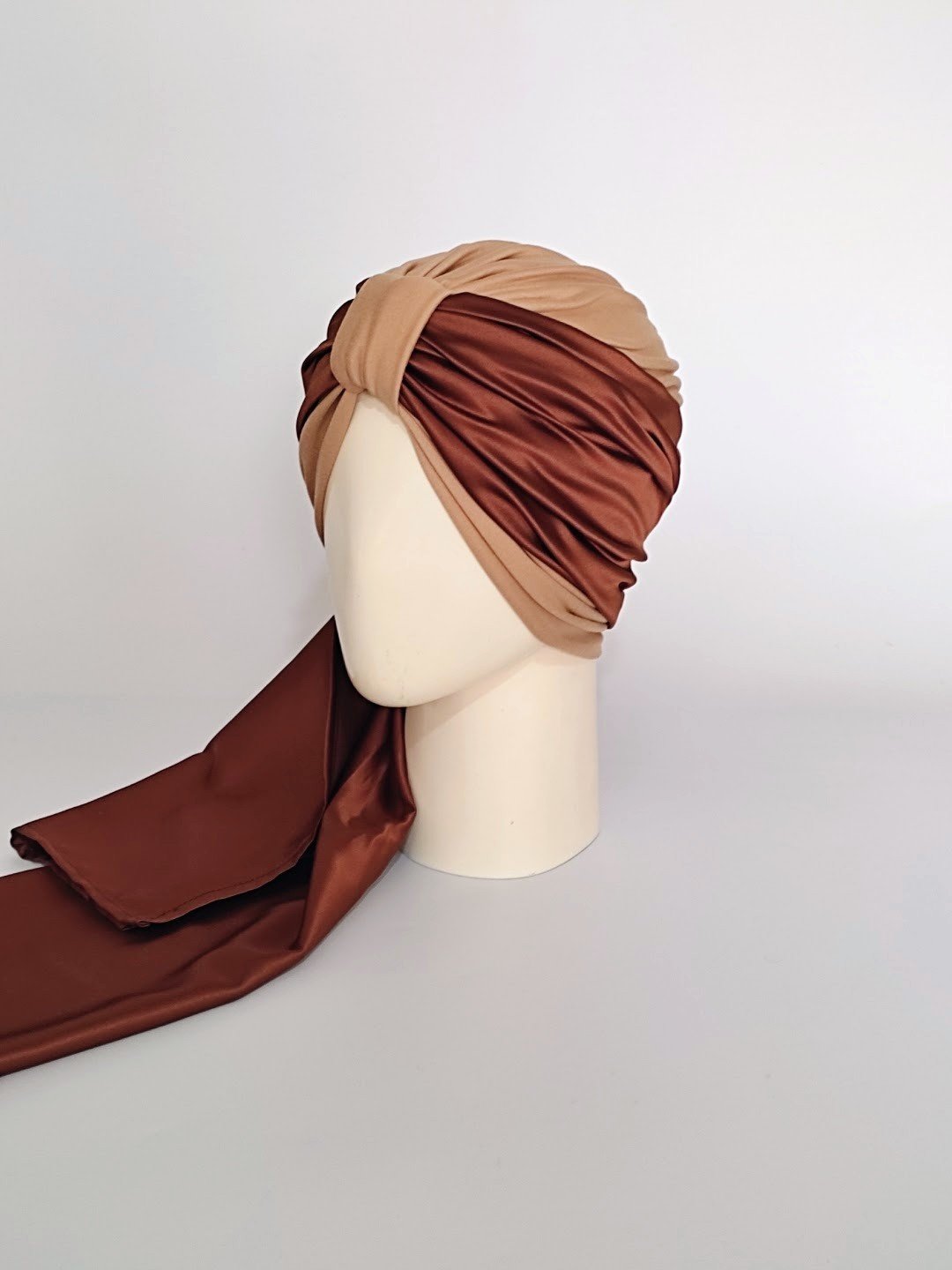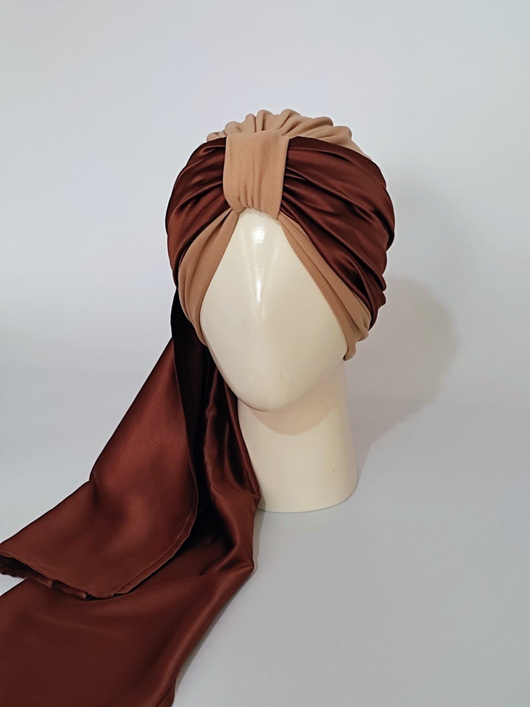 Gorro con pañoleta – Beige con pañoleta Chocolate.
