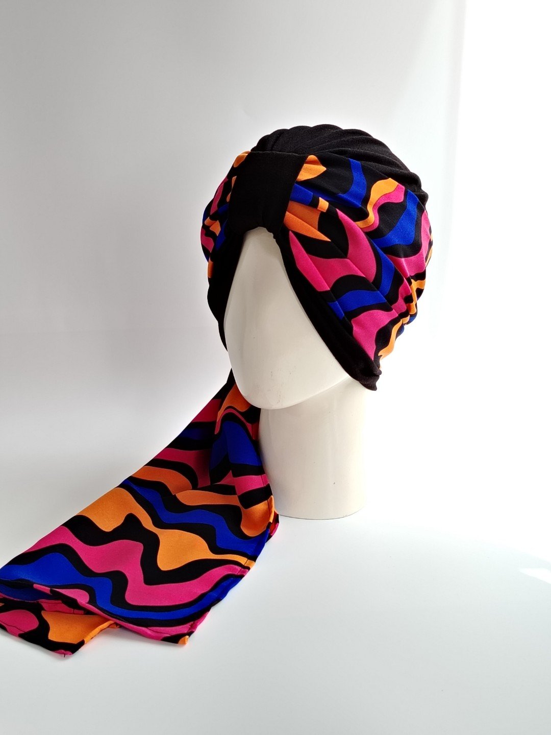 Gorro con pañoleta – Negro y pañoleta multicolor.