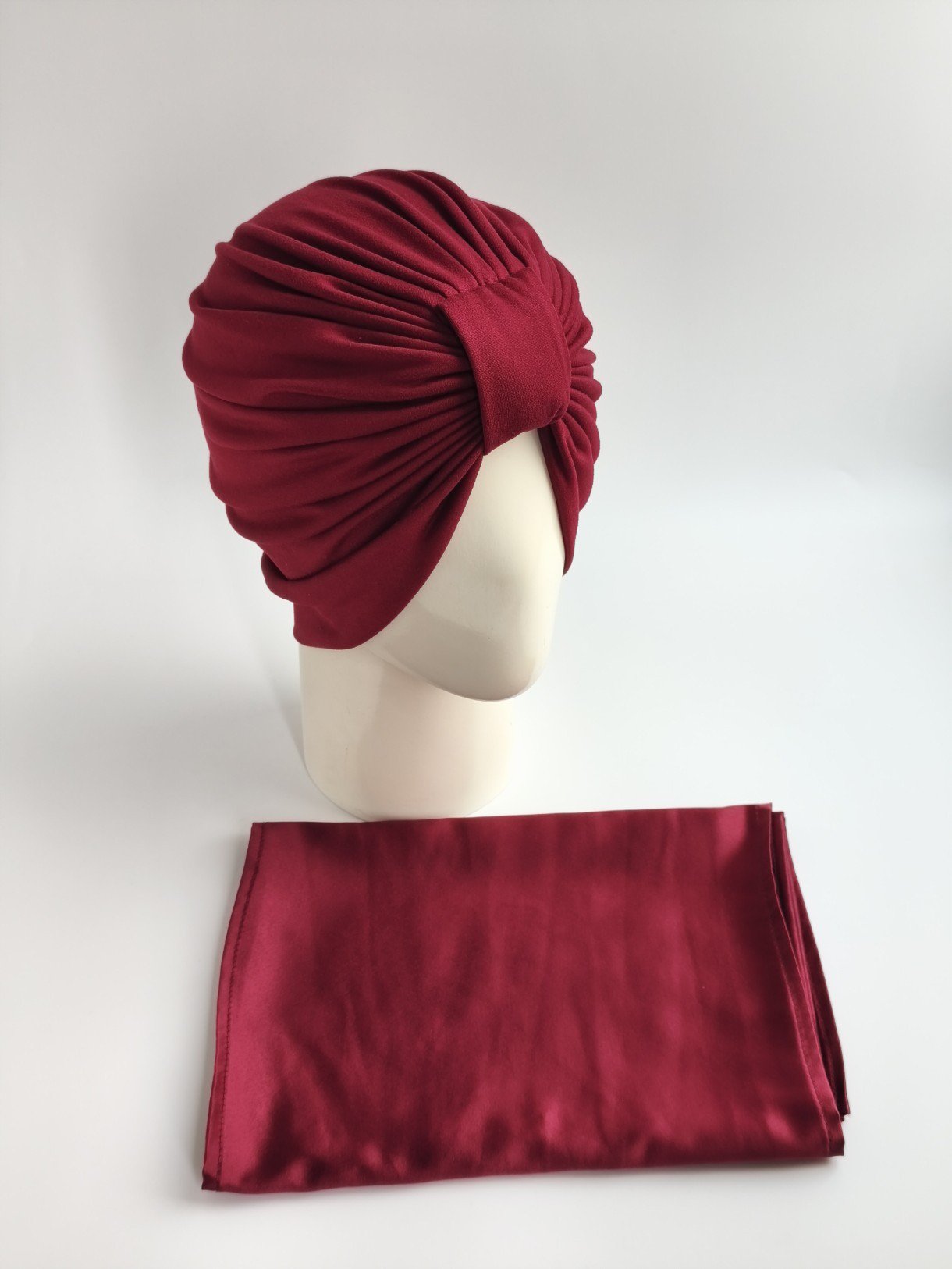 Gorro Turbante con pañoleta – vino .