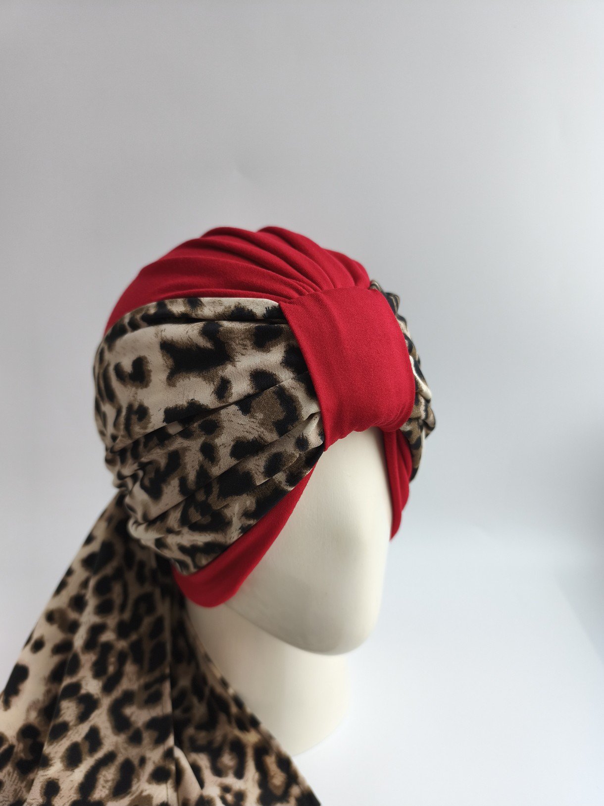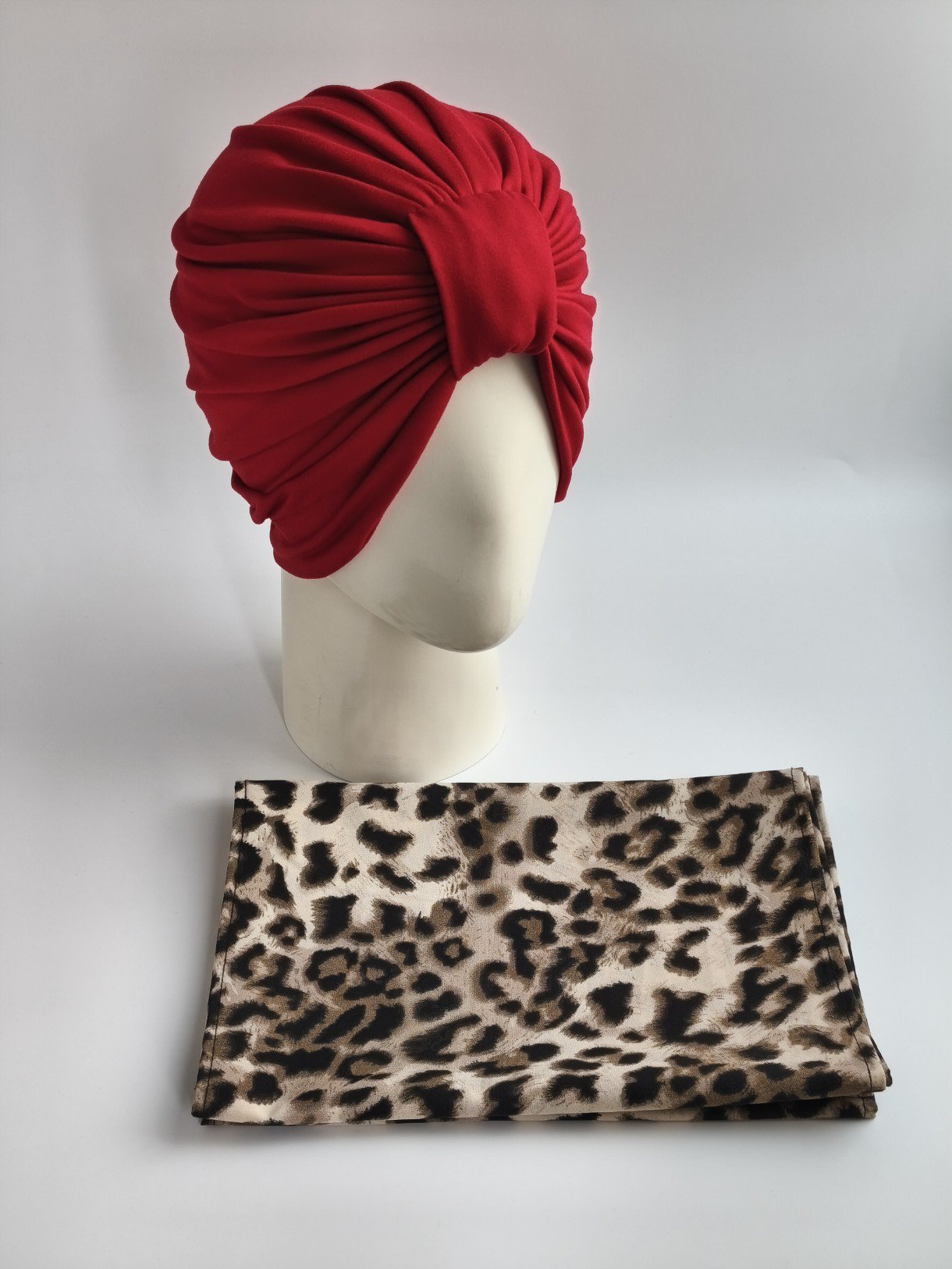 Gorro Turbante con pañoleta -Rojo con pañoleta Animal print.